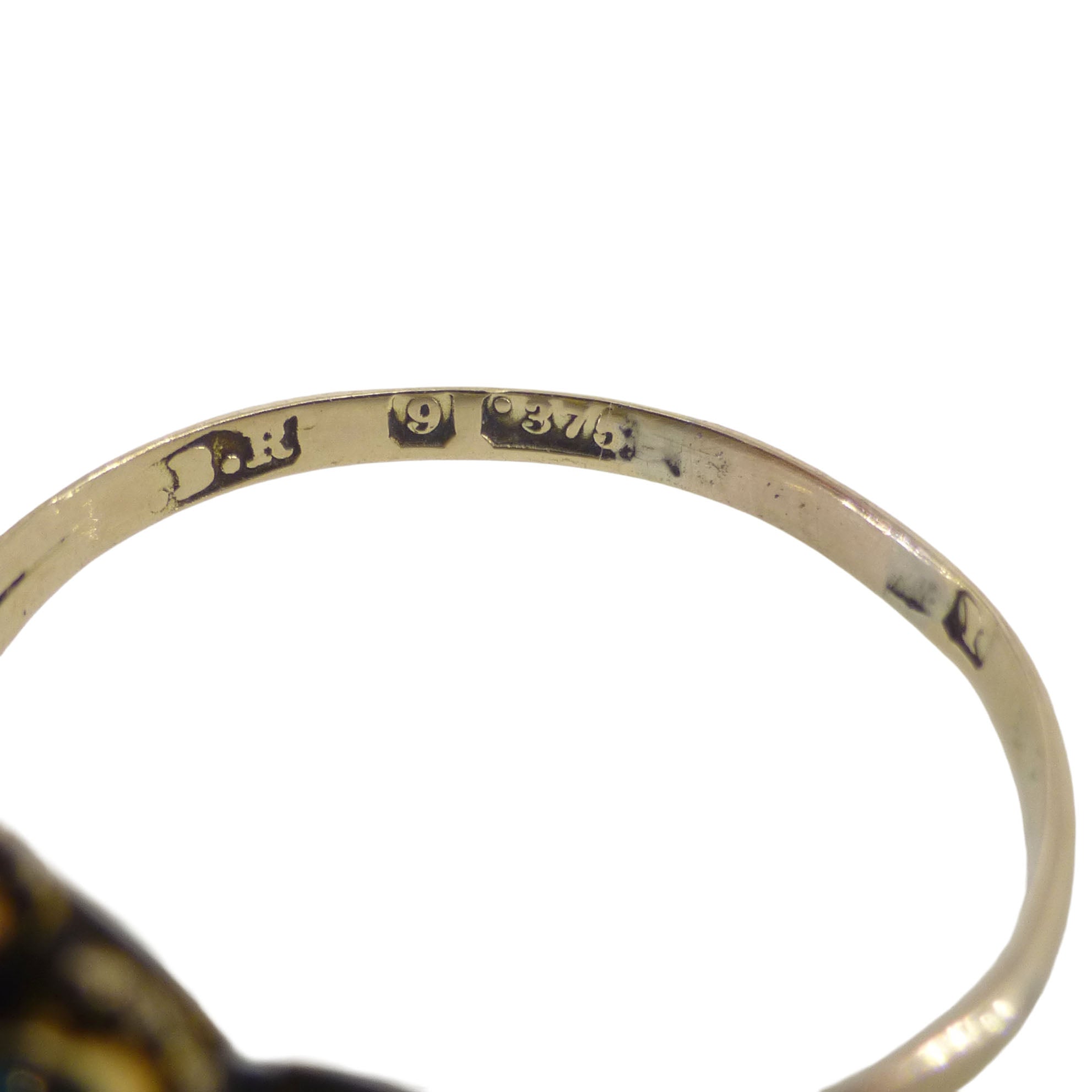 The ring is hallmarked on the inside band with makers mark 'B.R' and date letter 'Y' for 1891.
